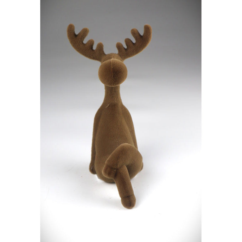 Niedliche Rentier Figur Weihnachten aus Kunststoff mit weicher Flock-Oberfläche